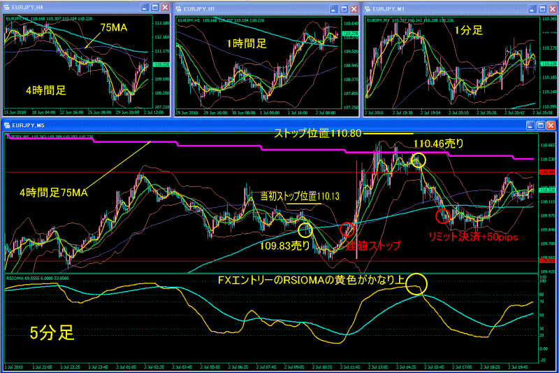 二回目は4時間足の75MAで2回跳ね返されましたので