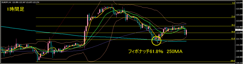 1時間足の250MAとフィボナッチの61.8%