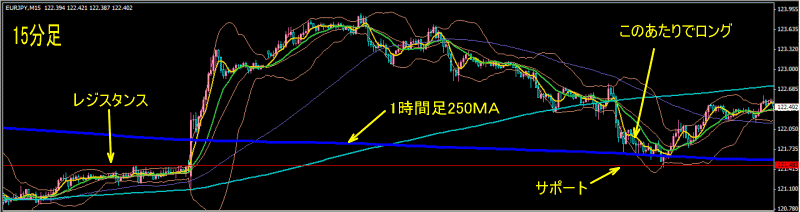 15分足は自分の引いたサポート付近