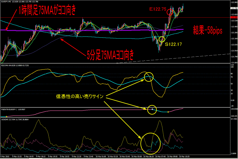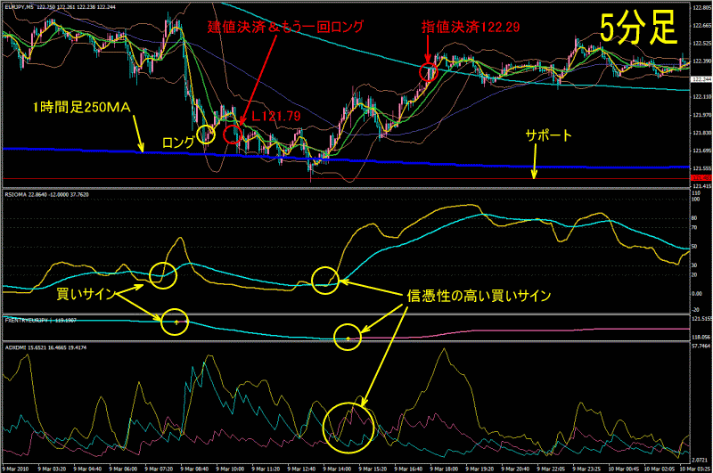 5分足のRSIOMAのクロス&買いサイン