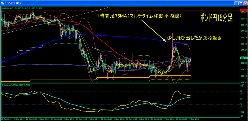 ポンド円が夕方1時間足の75MAまで上昇して